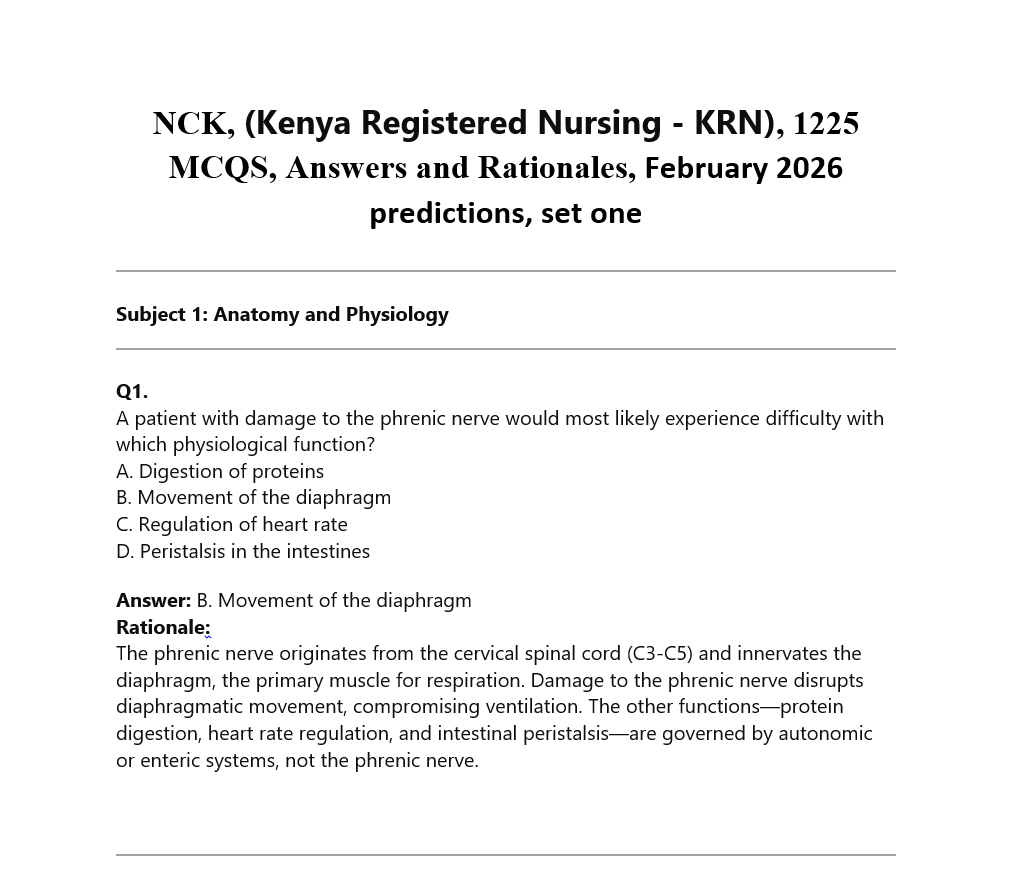 NCK, BScN paper 1, 500 MCQS, Answers and Rationales, February 2026 predictions, set one