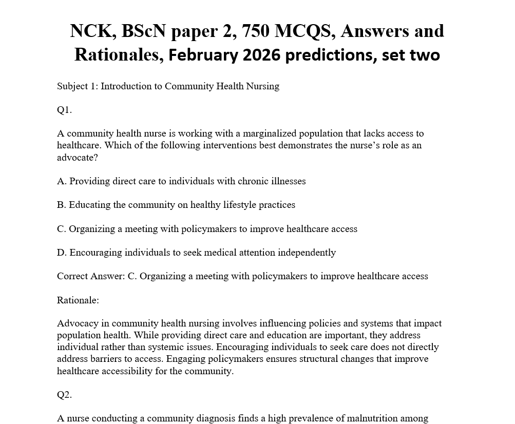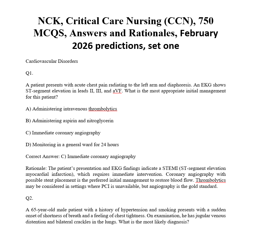 NCK, Critical Care Nursing (CCN), 750 MCQS, Answers and Rationales, February 2026 predictions, set one