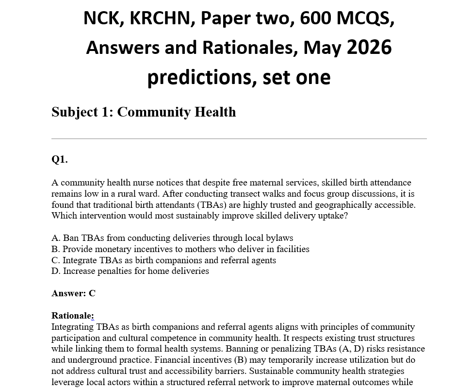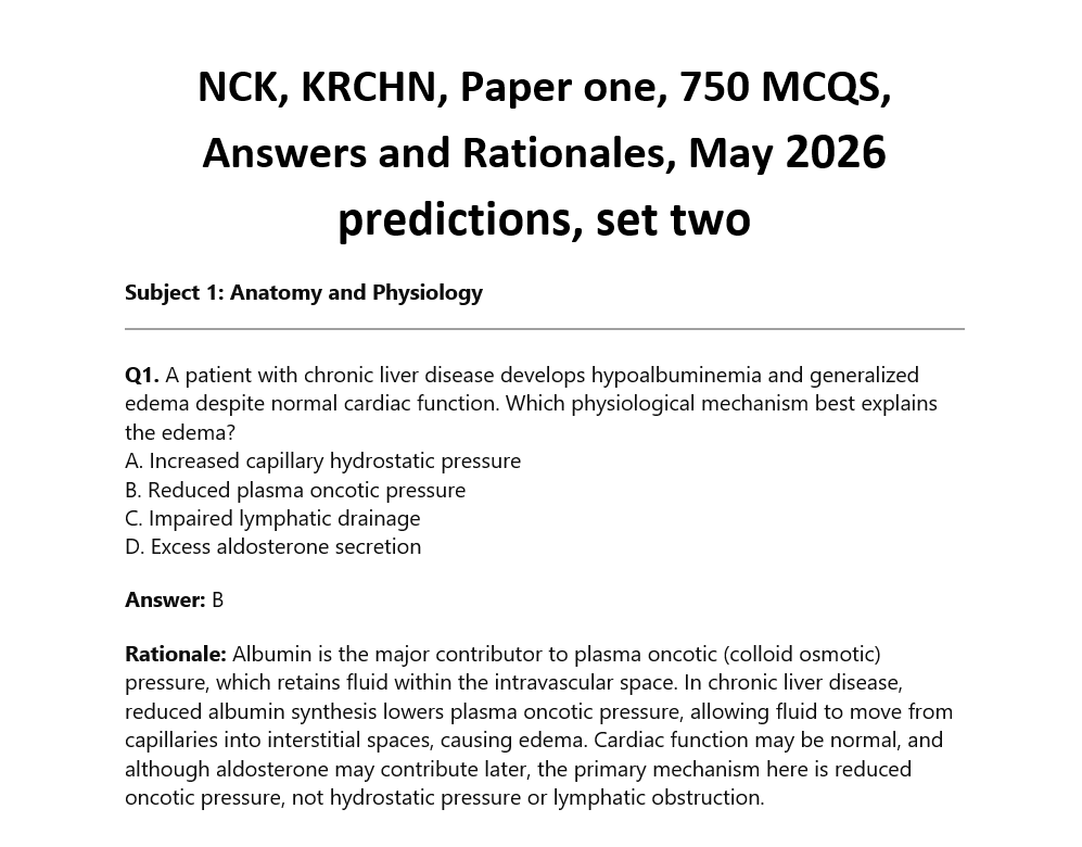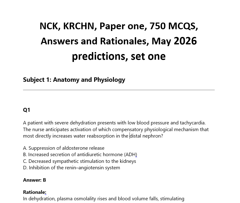 NCK, KRCHN, Paper one, 750 MCQS, Answers and Rationales, May 2026 predictions, set two