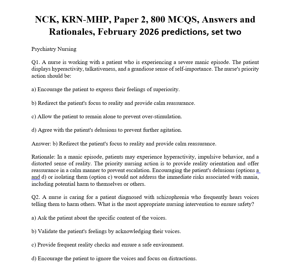 NCK, KRN-MHP, Paper 1, 1050 MCQS, Answers and Rationales, February 2026 predictions, set two
